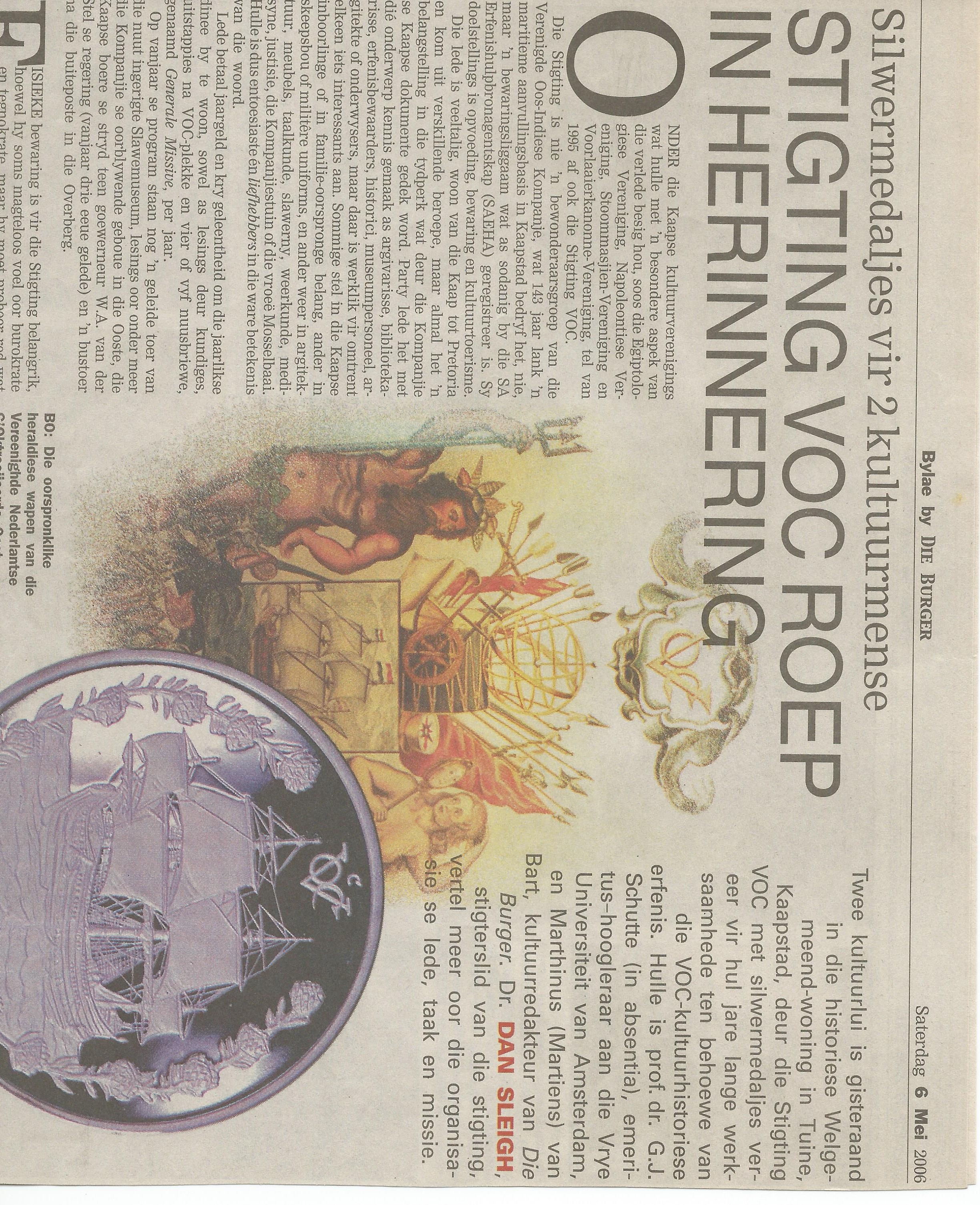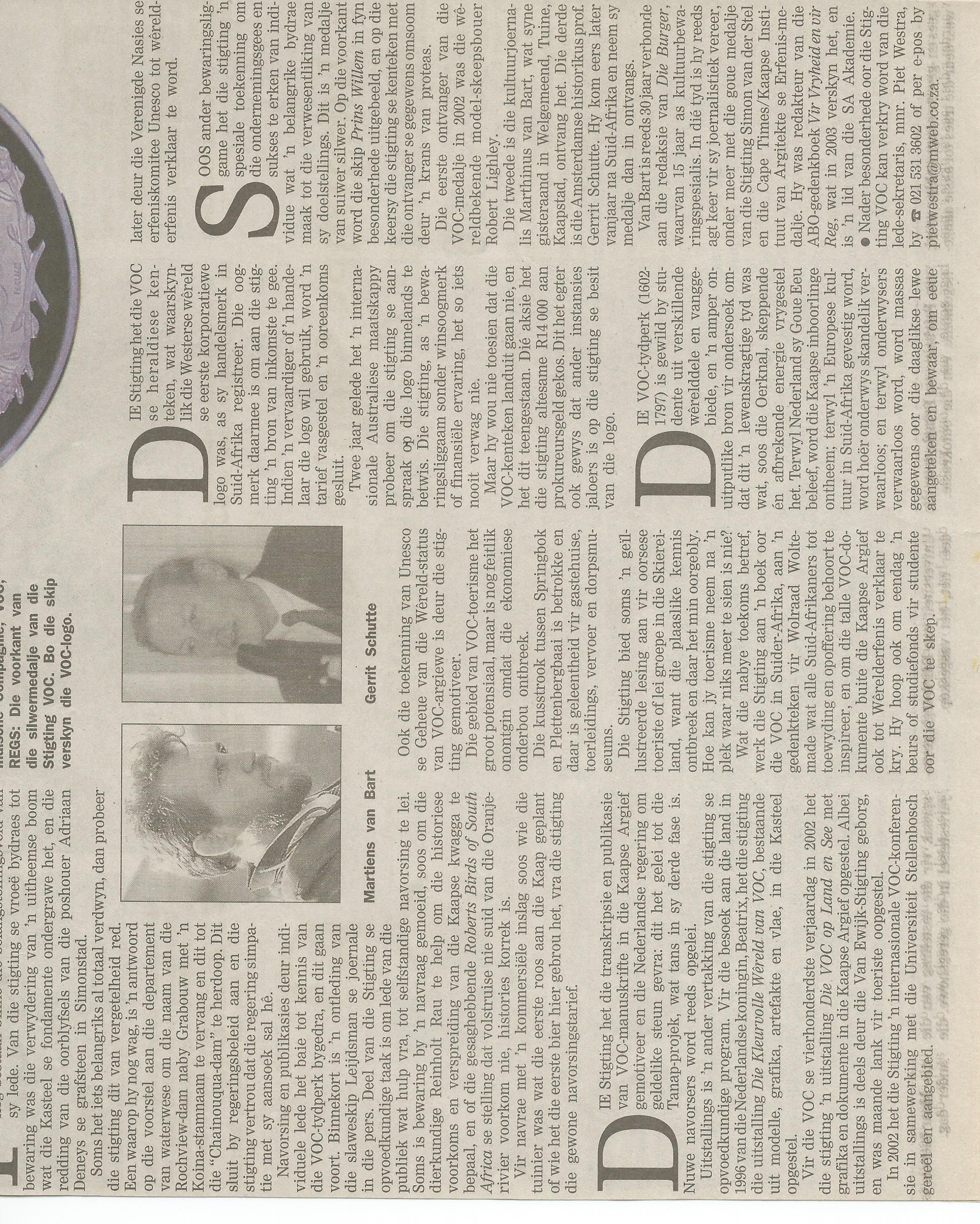 Die bestuurskomitee het besluit om vanjaar twee toekennings van ons silwermedalje te maak, die een aan mnr Marthinus van Bart vanaand en die ander aan professor G.J. Schutte, wanneer hy die land aan die einde van die jaar besoek.