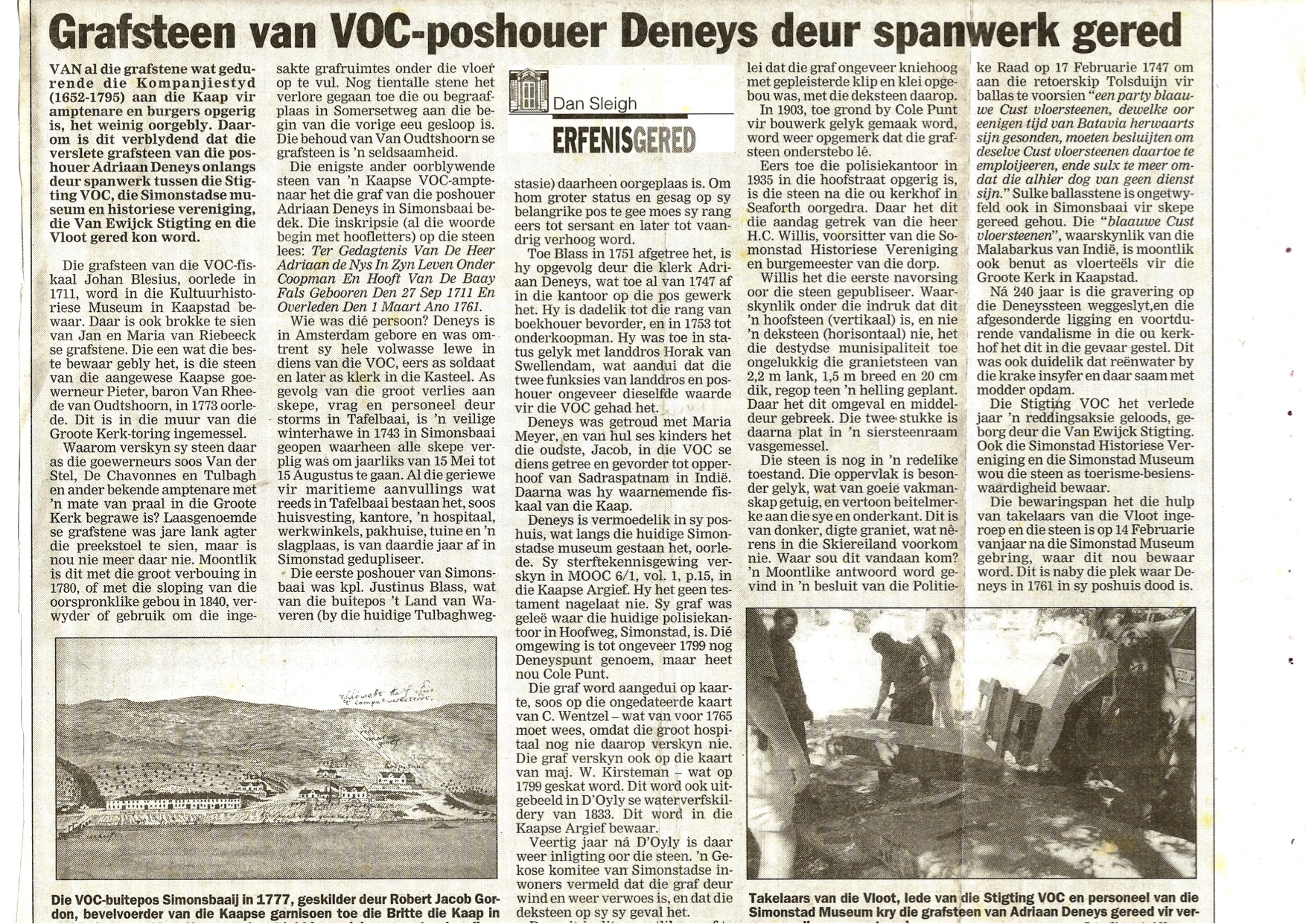 Poshouer Deneys was die stamvader van dié familie in Suid-Afrika. Die steen is van uitheemse rots gemaak en het moontlik as ballast op 'n VOC-skip aangekom.