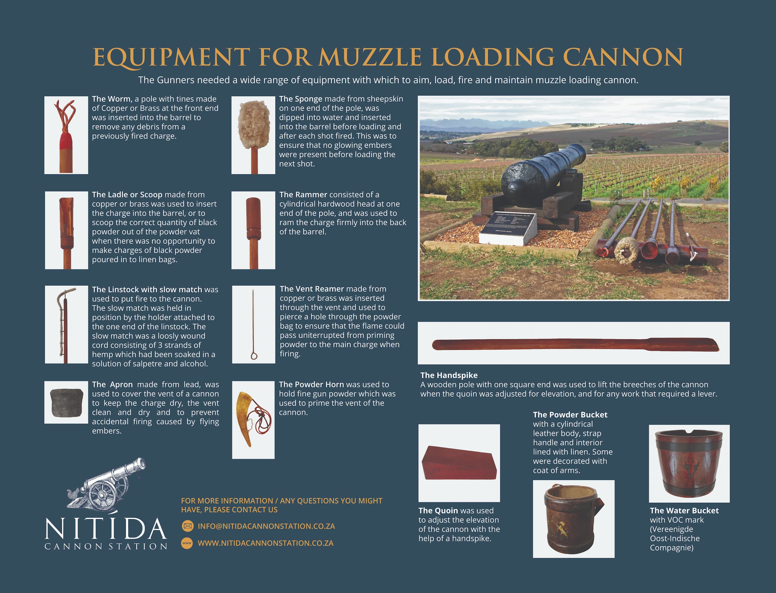 Meer inligting oor die kanonstelling kan verkry word deur navrae te rig aan [email protected] of die webwerf te besoek: https://www.nitidacannonstation.co.za.